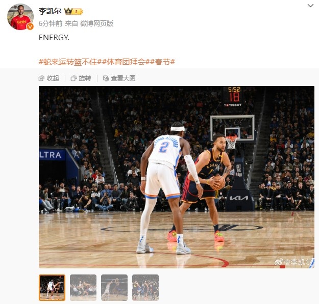 2月1日讯 今天,勇士球员李凯尔更新了个人微博。李凯尔晒出自己的多张赛场照,配文写道:“能量感。”勇士目前的战绩为24胜23负,排名西部第十一。他们将在今天上午11:00主场迎战太阳。 本文标签: NBA 篮球 勇士 李凯尔