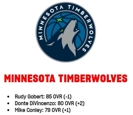森林狼球员2K能力更新:戈贝尔-1至85 迪文岑佐+2至80 康利+1至79