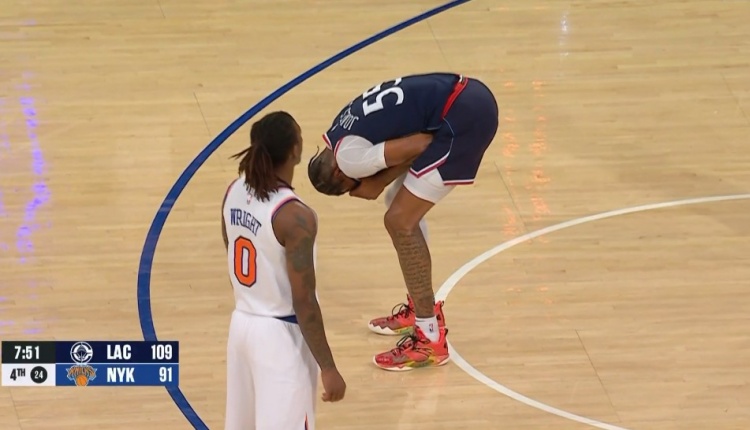 阿隆-戈登眉角流血&有很明显的伤口 目前3犯在场下休息