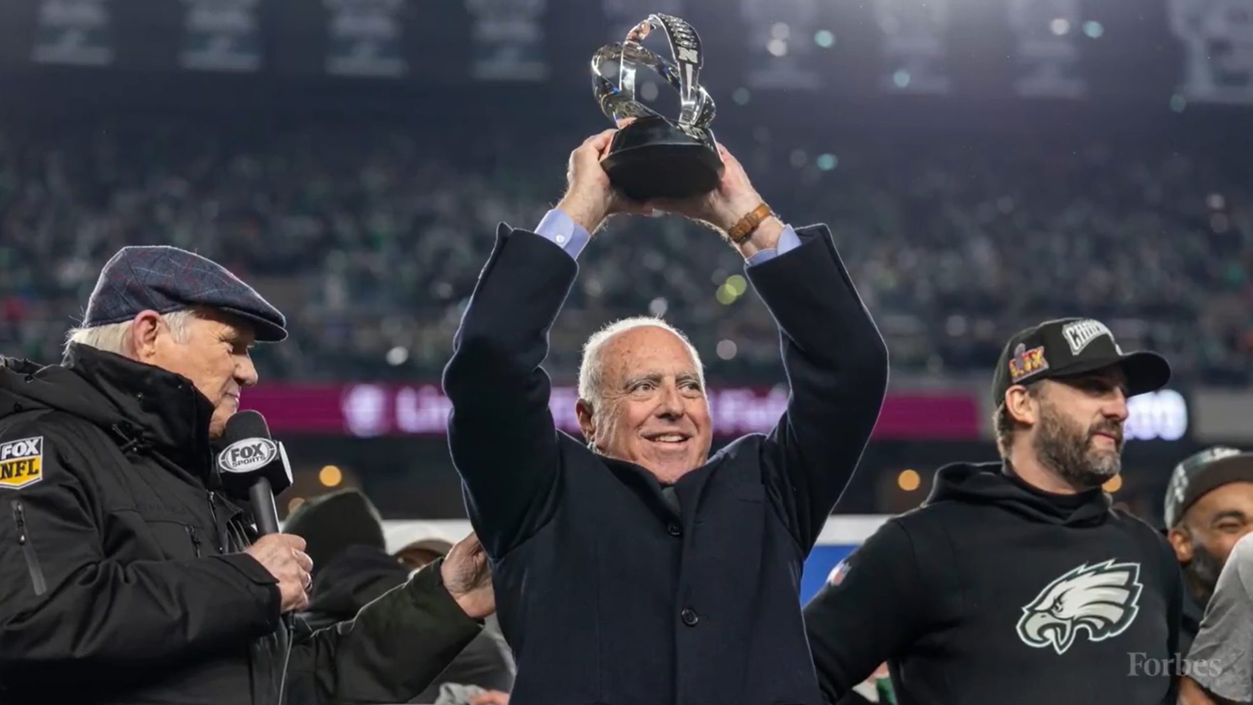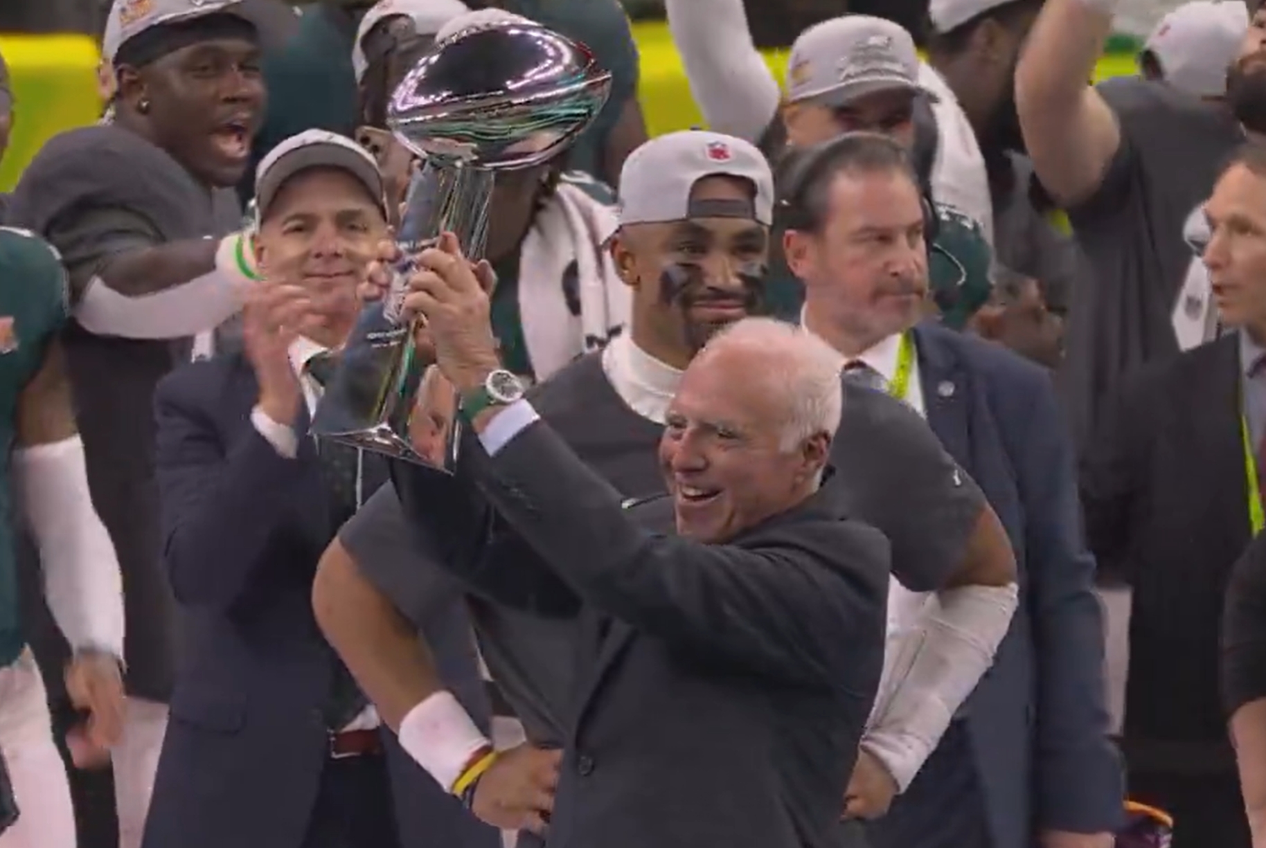 02月10日讯 费城老鹰40-22击败堪萨斯酋长,夺得队史第二个超级碗冠军。费城老鹰老板杰弗里-卢里现场观战并和球员一起庆祝夺冠。