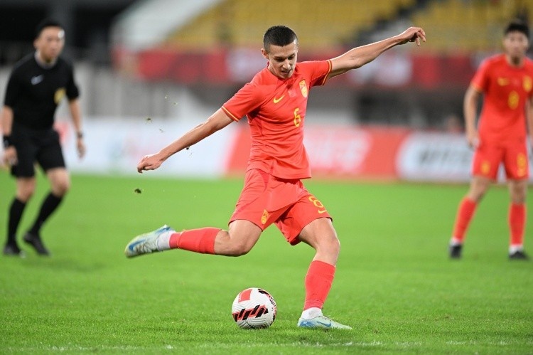本场比赛第43分钟,依木兰挑传身后,刘诚宇杀入禁区后被放倒,主裁判判罚点球,王钰栋主罚点球命中。