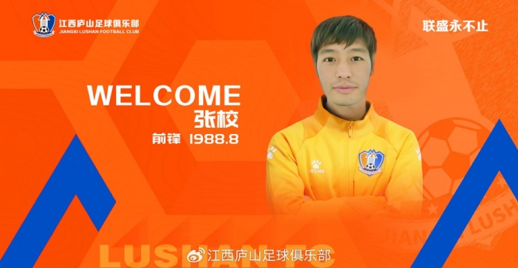 经与本人友好协商一致,球员张校正式加盟江西庐山足球俱乐部。