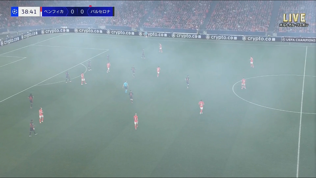 本菲卡球迷燃放烟花,现场烟雾缭绕
