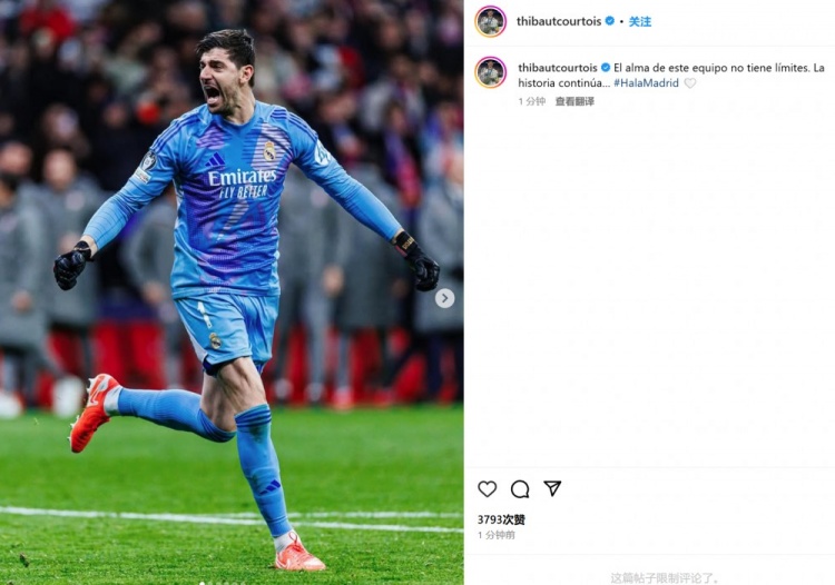 3月13日讯 皇马在本轮欧冠点球淘汰马竞,库尔图瓦面对老东家表现神勇做出7次扑救,堪称全场最佳。他也在赛后通过社媒晒出自己的狂奔庆祝照,并配文:“这支球队的意志力永无止境!故事还在继续……” 本文标签: 足球 西甲 皇家马德里 马德里竞技 欧冠
