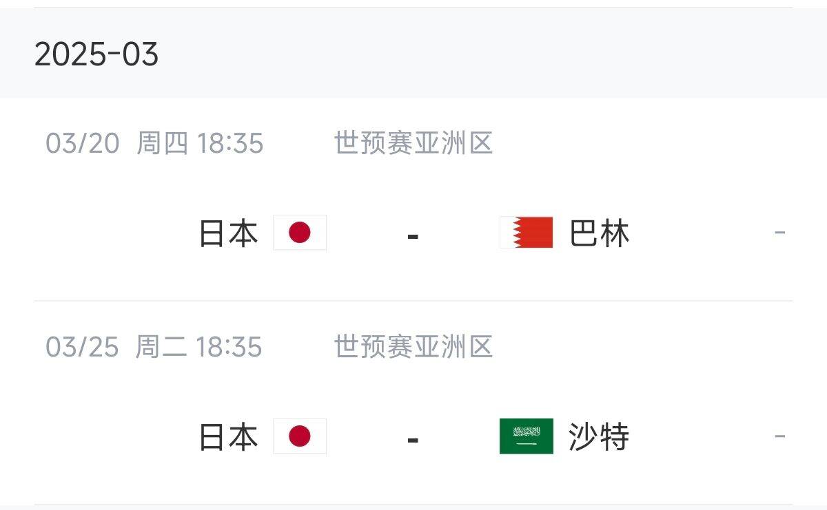 日本队赛程: