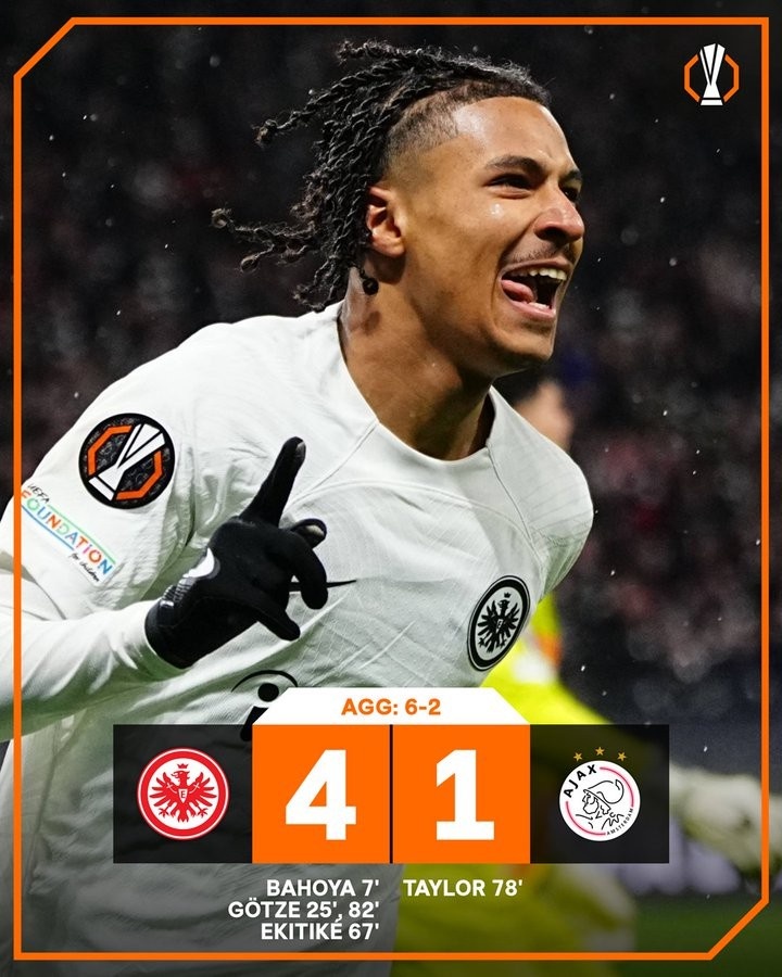 3月14日讯 法兰克福在本轮欧联杯主场4-1大胜阿贾克斯,两回合总比分6-2双杀对手。数据统计显示,法兰克福在欧联杯淘汰赛已经连续9场不败(6胜3平),也创下了他们队史的欧战淘汰赛连续不败纪录。 本文标签: 足球 德甲 法兰克福 欧联杯