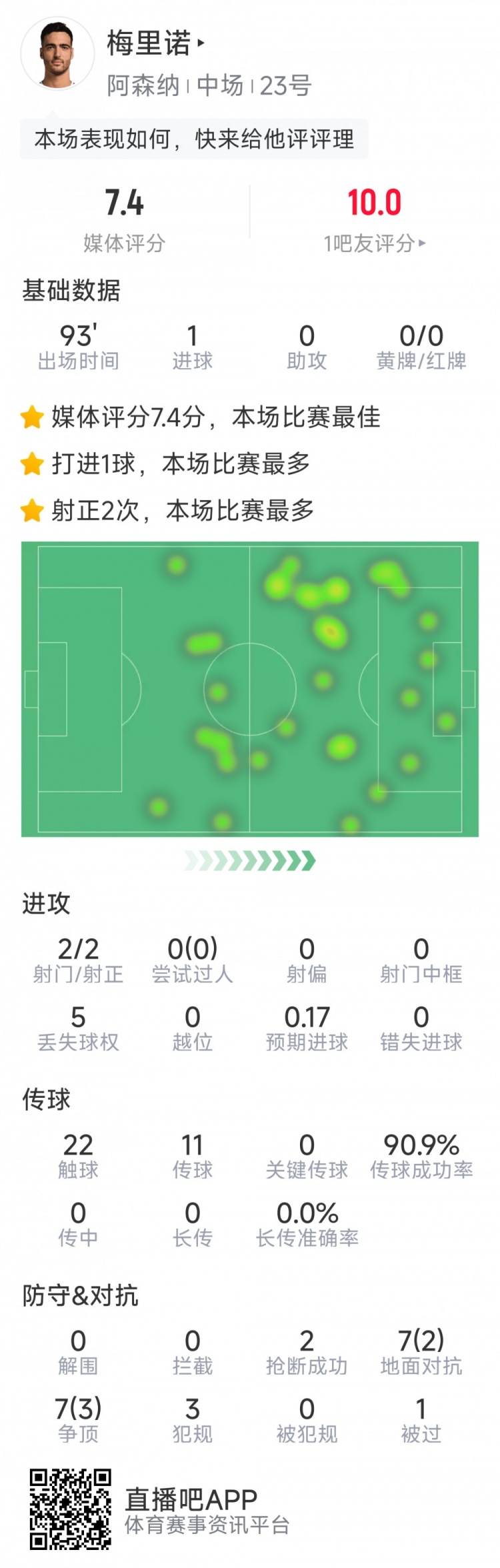 3月16日讯 在本轮英超阿森纳1-0击败切尔西的比赛中,梅里诺打进唯一进球。以下为他在本场数据:1粒进球2次射门均射正22次触球传球成功率90.9%2次抢断14次对抗5次成功评分7.4分 本文标签: 足球 英超 阿森纳