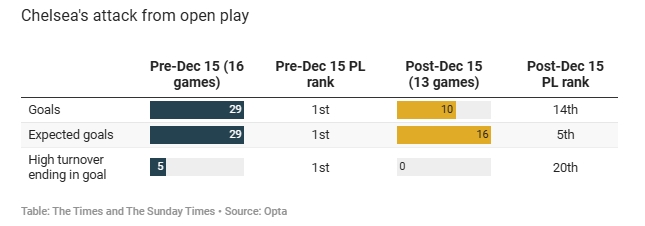 3月19日讯 根据Opta的数据,切尔西在本赛季英超前16轮比赛后打进了29粒运动战进球以及同期运动战预期进球29粒,均排名第一。而最近13轮英超比赛中,切尔西打进了10粒运动战进球排名第14位,同期运动战预期进球16粒排名第5位。另外,切尔西在英超前16轮中利用高位失误打进了5粒进球排名第一,而最近13轮比赛该项数据为0。本赛季英超,切尔西29轮拿到49分,排名第4位。 本文标签: 足球 英超 切尔西