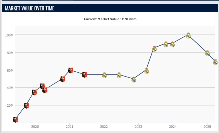 昨日德转更新西甲球员身价,22岁的皇马中场卡马文加再降1000万,最新身价为7000万欧。去年6月,卡马文加巅峰身价达到1亿欧。但他本赛季频繁受到伤病困扰,出场和状态也深受影响。 本文标签: 足球 西甲 皇家马德里