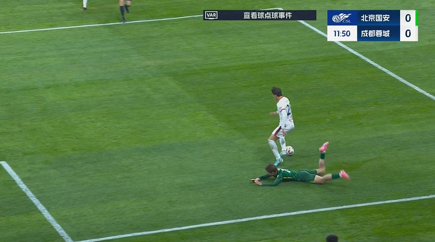 03月29日讯 中超第3轮,北京国安vs成都蓉城。比赛第11分钟,杨立瑜突破至禁区内与元敏诚接触后倒地,马宁果断判罚点球!随后VAR介入,马宁去场边查看后维持点球判罚。第18分钟法比奥点射破门,国安1-0领先蓉城。 本文标签: 足球 中超 中国足球 北京国安 成都蓉城