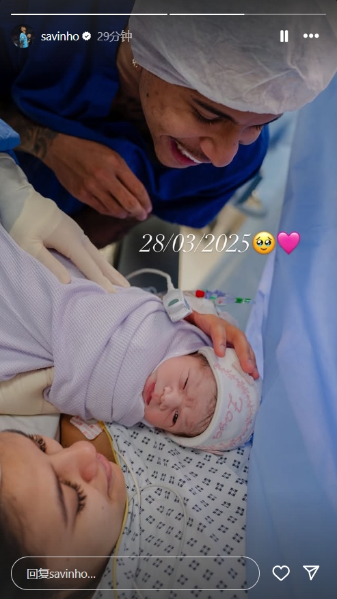 3月30日讯 曼城边锋萨维尼奥更新社媒动态,庆祝孩子出生。萨维尼奥去年12月宣布女友怀孕,今日他在社交媒体上晒出新生儿的照片,并配上孩子出生的日期——2025年3月28日。萨维尼奥本赛季为曼城出战38场比赛,打进2球,助攻11次。 本文标签: 足球 英超 曼城