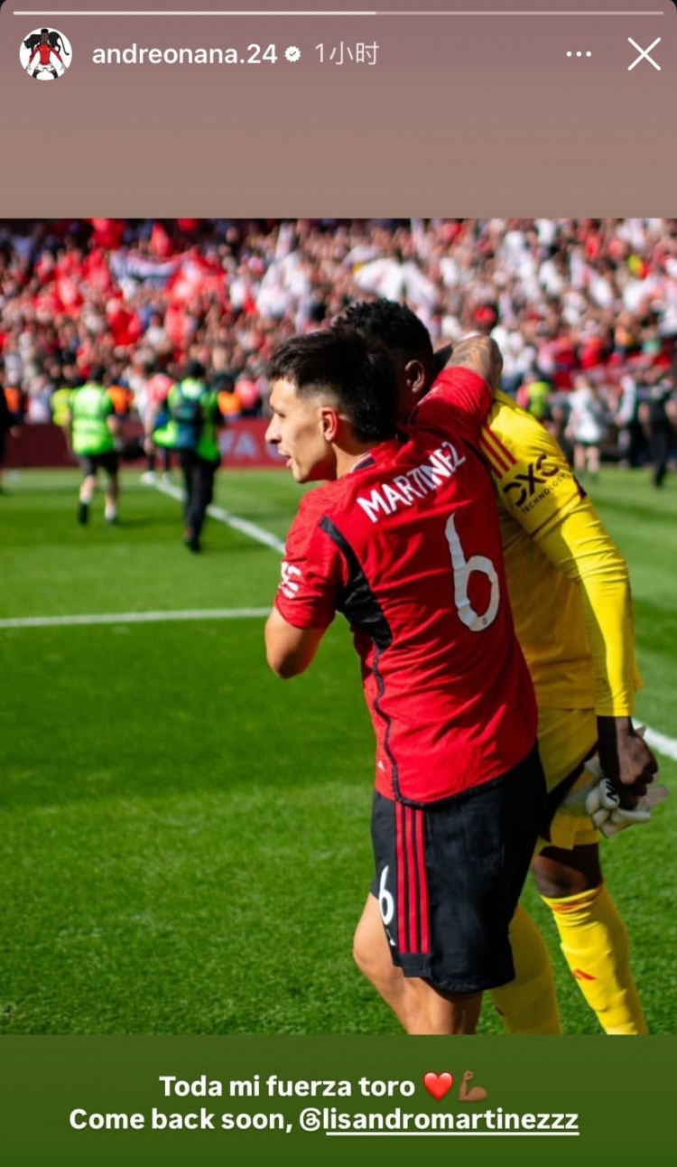 2月4日讯 多家媒体报道,曼联中卫利马遭遇十字韧带撕裂重伤,预计伤缺六个月时间,赛季提前报销。奥纳纳更新了社媒,向自己的后防搭档送上安慰。