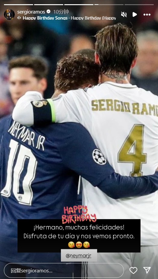 2月5日讯 今天内马尔迎来33岁生日,C罗迎来40岁生日。拉莫斯更新动态,向两位前队友表示了祝贺。拉莫斯晒与同内马尔的同框照,并表示道:“祝贺兄弟!享受你的这一天吧,我们回头见。”拉莫斯也晒出同C罗在皇马时期的合照,并表示道:“祝贺兄弟!祝福你一切都好。” 本文标签: 足球 西甲 皇家马德里 法甲 巴黎圣日耳曼 内马尔 C罗