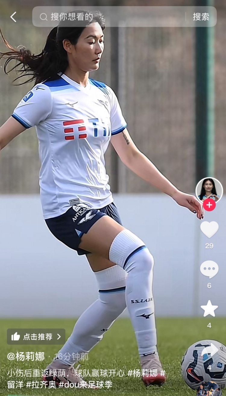 1月26日讯 今天,杨莉娜更新社媒,为拉齐奥女足赢球庆祝的同时,也庆祝自己伤愈复出。北京时间昨晚进行的意女甲第16轮比赛,拉齐奥女足主场2-0击败佛罗伦萨女足,伤愈归来的杨莉娜在第83分钟替补出场。赛后,杨莉娜在社媒晒出了自己的比赛视频并配文写道:“小伤后重返绿茵,球队赢球开心。”目前,拉齐奥女足以4胜4平8负的成绩在积分榜排名第7,本赛季杨莉娜已代表拉齐奥女足出场11次,其中2次首发。 本文标签: 足球 中超 中国足球